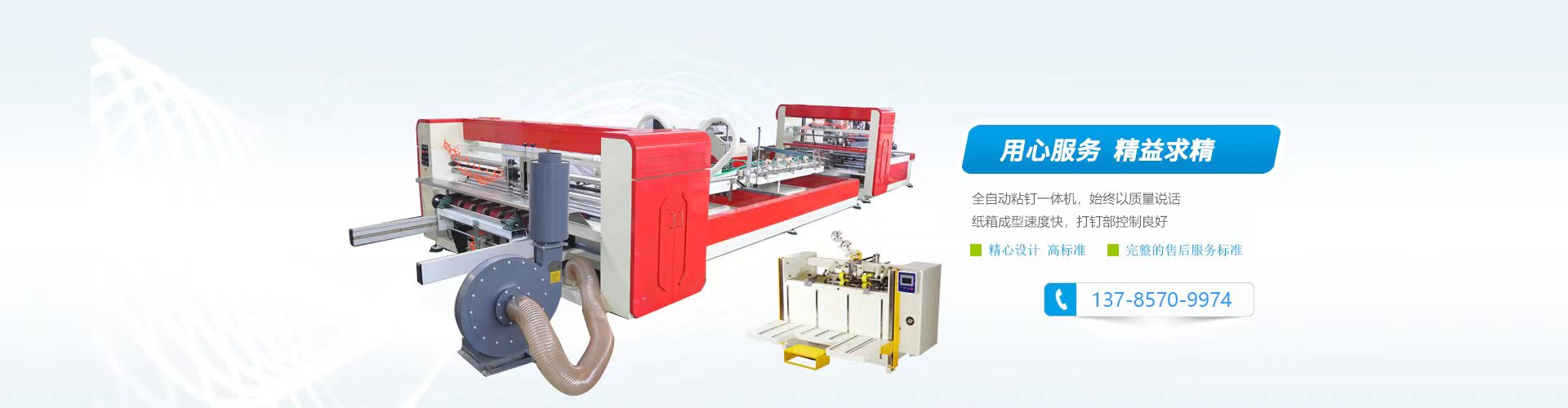 全自動粘箱機 半自動粘箱機 雙片粘箱機 水墨印刷機 全自動粘訂一體機 印刷粘箱聯動線 紙板生產線 淘寶紙箱機 壓合式粘箱機 圓壓圓模切機 釘箱機 貼窗機系列 開槽模切機 覆膜機/復膜機 硬紙板生產線 單面瓦楞機 印刷機配件 碰線機 分紙機 捫盒機 薄刀機 四聯開槽切角機 無軸支架 切紙機 堆碼機 覆面機 貼面機 啤機 輸紙機 其他產品